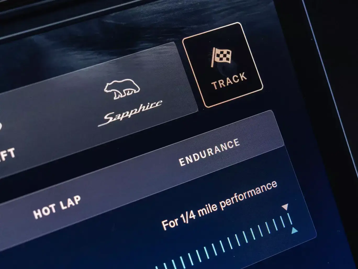 Verändern Sie mit den exklusiv für den Lucid Air Sapphire verfügbaren Fahrmodi Sapphire und Track nicht nur das Ansprechverhalten von Fahrwerk, Bremsen und Lenkung, sondern nehmen Sie auch Einfluss auf das verfügbare Drehmoment, die maximale Leistung und das Thermomanagement des Fahrzeugs.