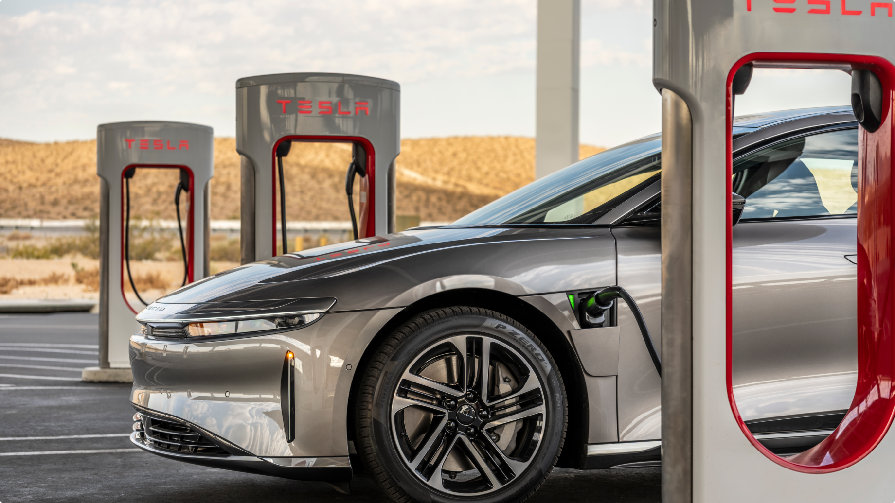 Lucid has partnered with Tesla to provide Lucid Air owners with greater convenience, faster charging, and more seamless access to the more than 23,500 Tesla Superchargers across North America, enabling DC fast charging in even more places.