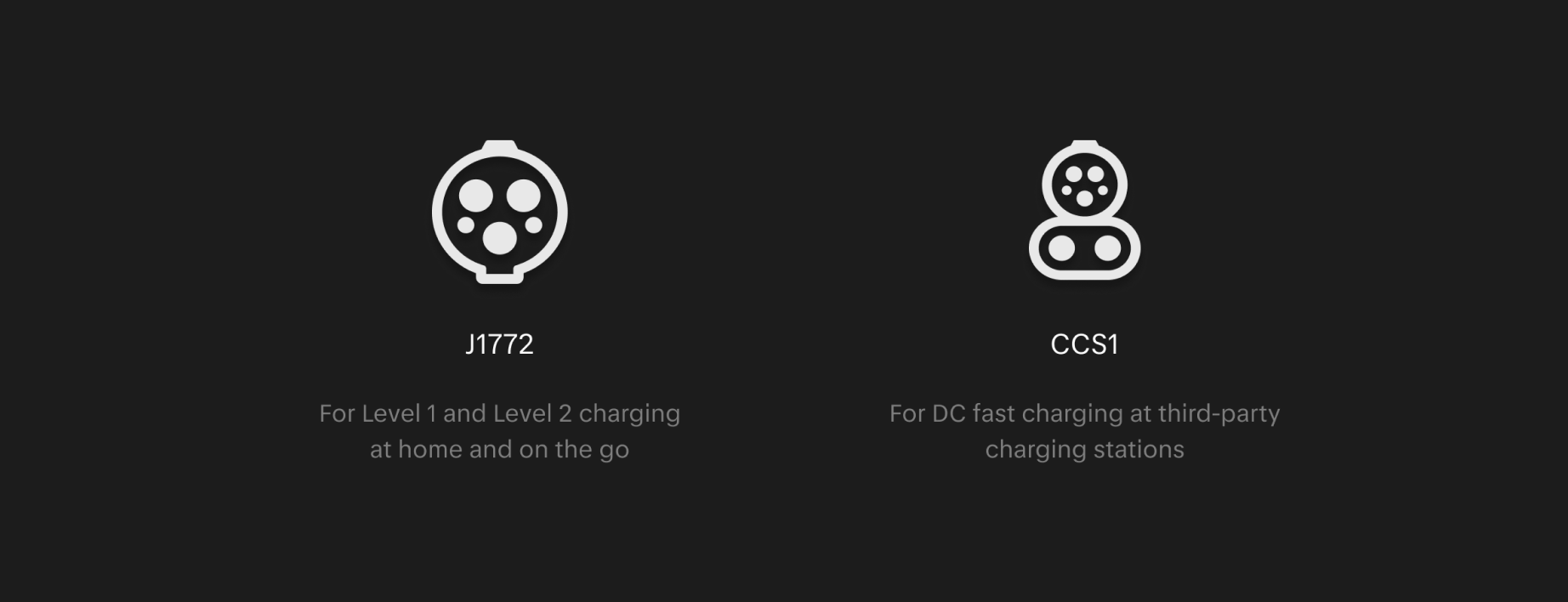Your Lucid Air has a J1772 (CCS1) charge port. The J1772 connector allows you to use Level 1 and Level 2 AC (alternating current) charging at home, while the CCS1 combo connector allows you to use DC (direct current) fast charging at third-party charging stations all over the country.