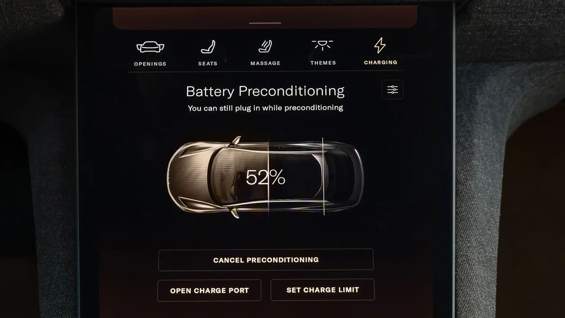 3. Precondition your battery before fast charging, either by tapping Start Preconditioning on the Charging screen or using Smart Preconditioning and the Navigation app to route to a fast charging station. Preconditioning ensures your battery is at the best temperature for accepting a charge, so you can power up faster and be on your way.