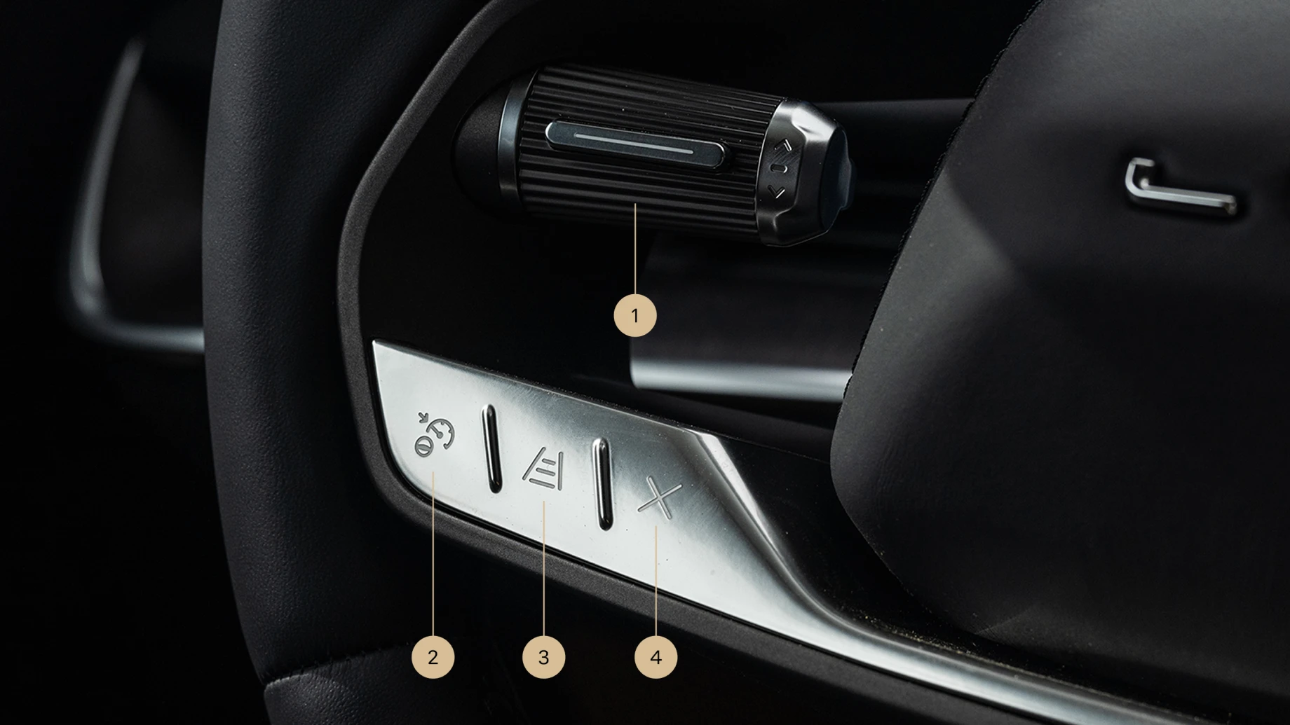The buttons for controlling DreamDrive’s driver assistance features can be found on the left side of your steering wheel, letting you activate, adjust, and deactivate these features with one hand.